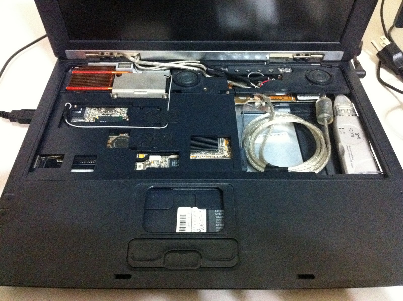 I have an old laptop that I have used on and off for small tasks for several years. It is an Athlon 4 1400+, ECS Balance A535, and was thrown out in 2005/2006 as bad at the company I worked for at the time. I don’t remember the reason, at least one of them was that we couldn’t keep a battery in it. Over the past few years I have repaired it repeatedly (though haven’t tackled the battery issue yet). I have: