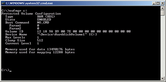 Finish the XP setup, when it is complete, DISABLE VIRTUAL MEMORY, it can’t help us anymore since everything is already being written to RAM. You may also want to disable System Restore and sleep/hibernate but not required. Follow the RoBoard instructions. The only instance of “engrish” is found in the naming of the batch files, no big deal. They will have you rebooting several times, then in CMD you can run “ewfmgr c:” and see the results: