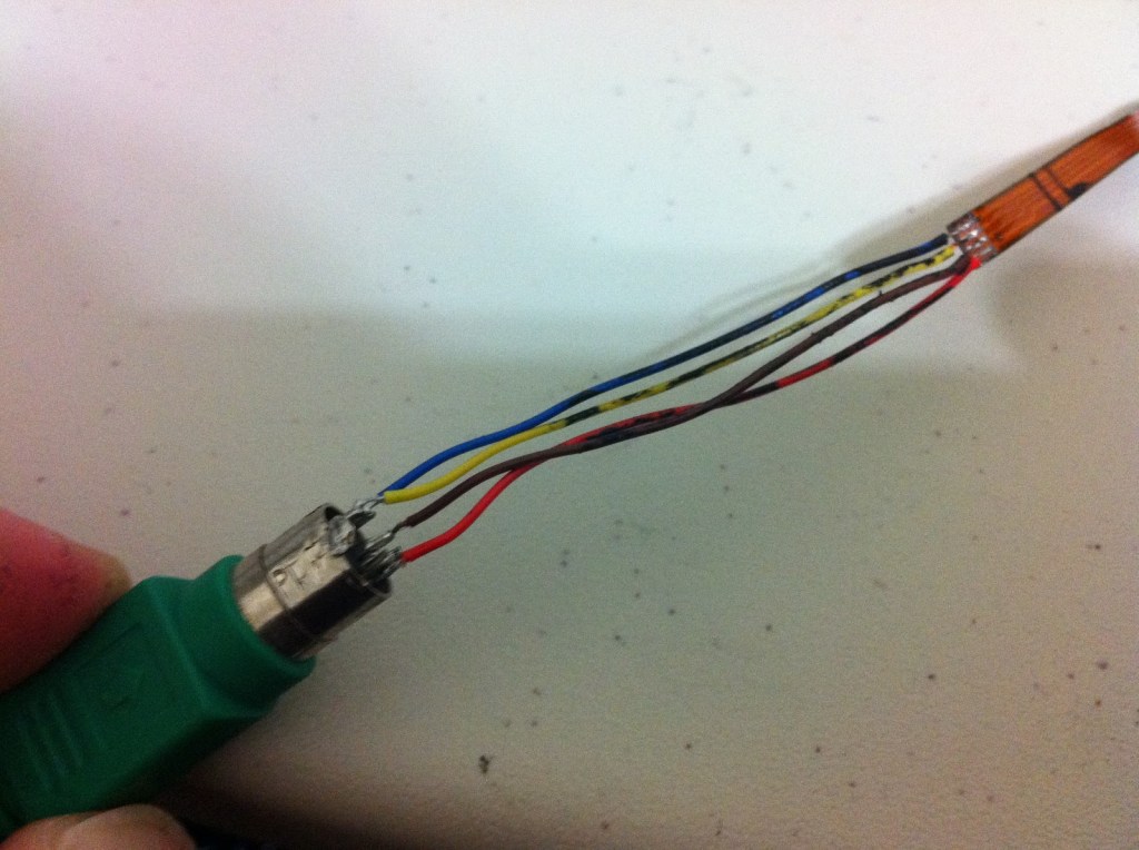 I also soldered the appropriate wires to the PS/2 connector on the touchpad – the connector by which it was plugged into my laptop’s motherboard.